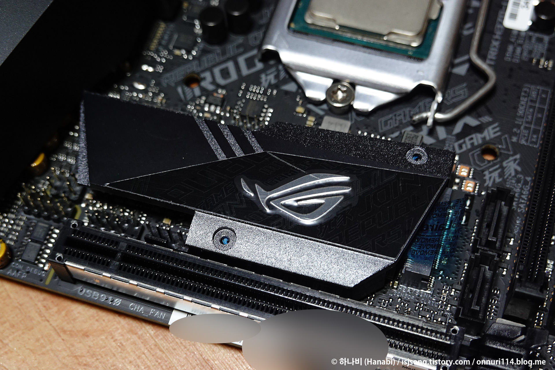 ASUS ROG 보드의 경우 m.2슬롯에 이런 큼지막한 방열판을 달아서 준비해줍니다.
