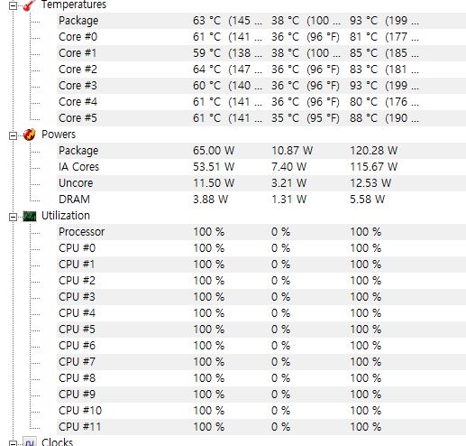 i7-8700 100%로드에서 안정적으로 60도대 관리를 해주고 있습니다.