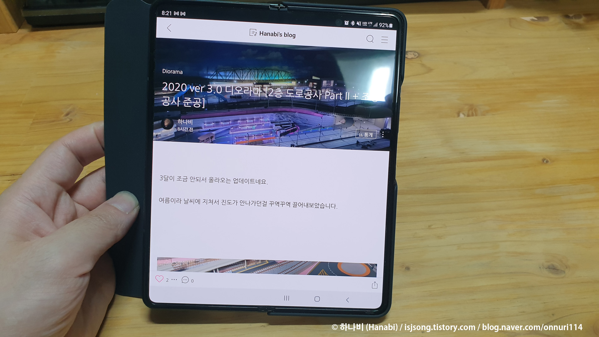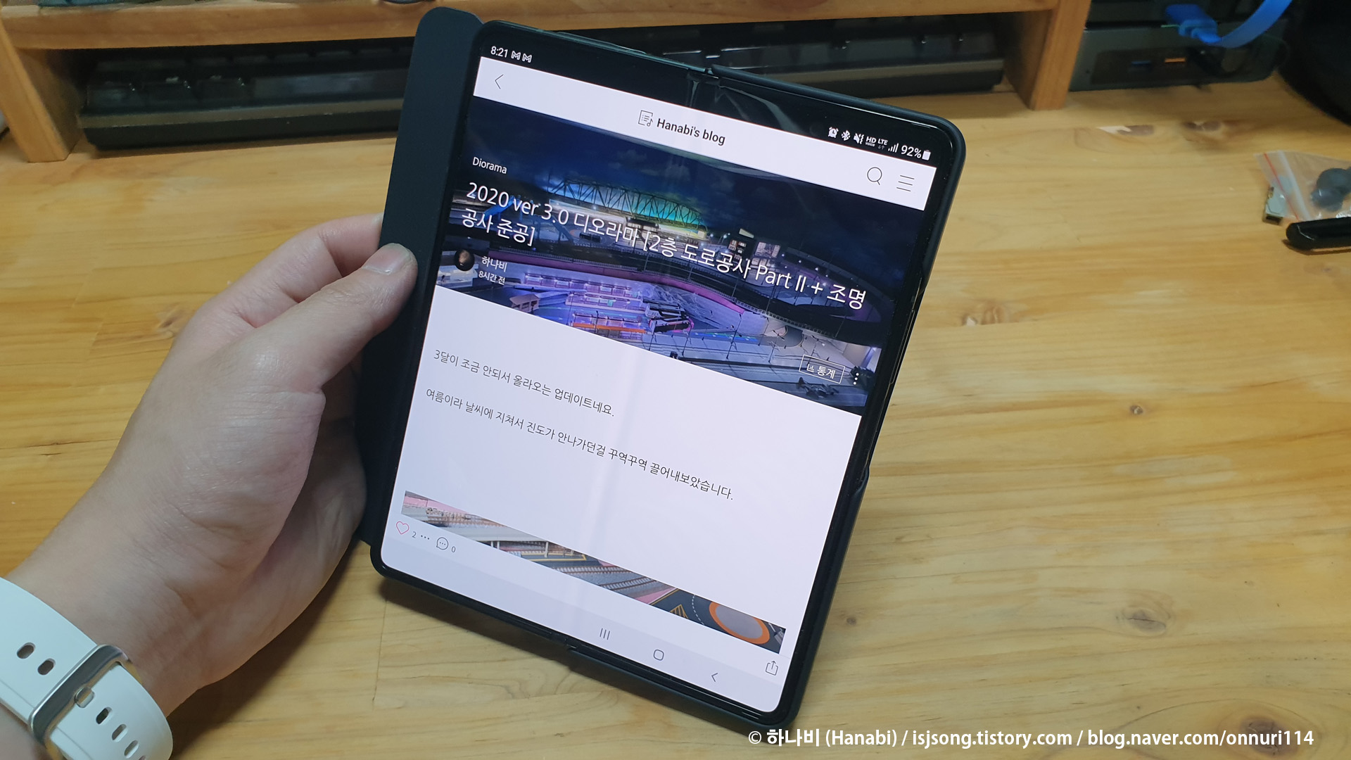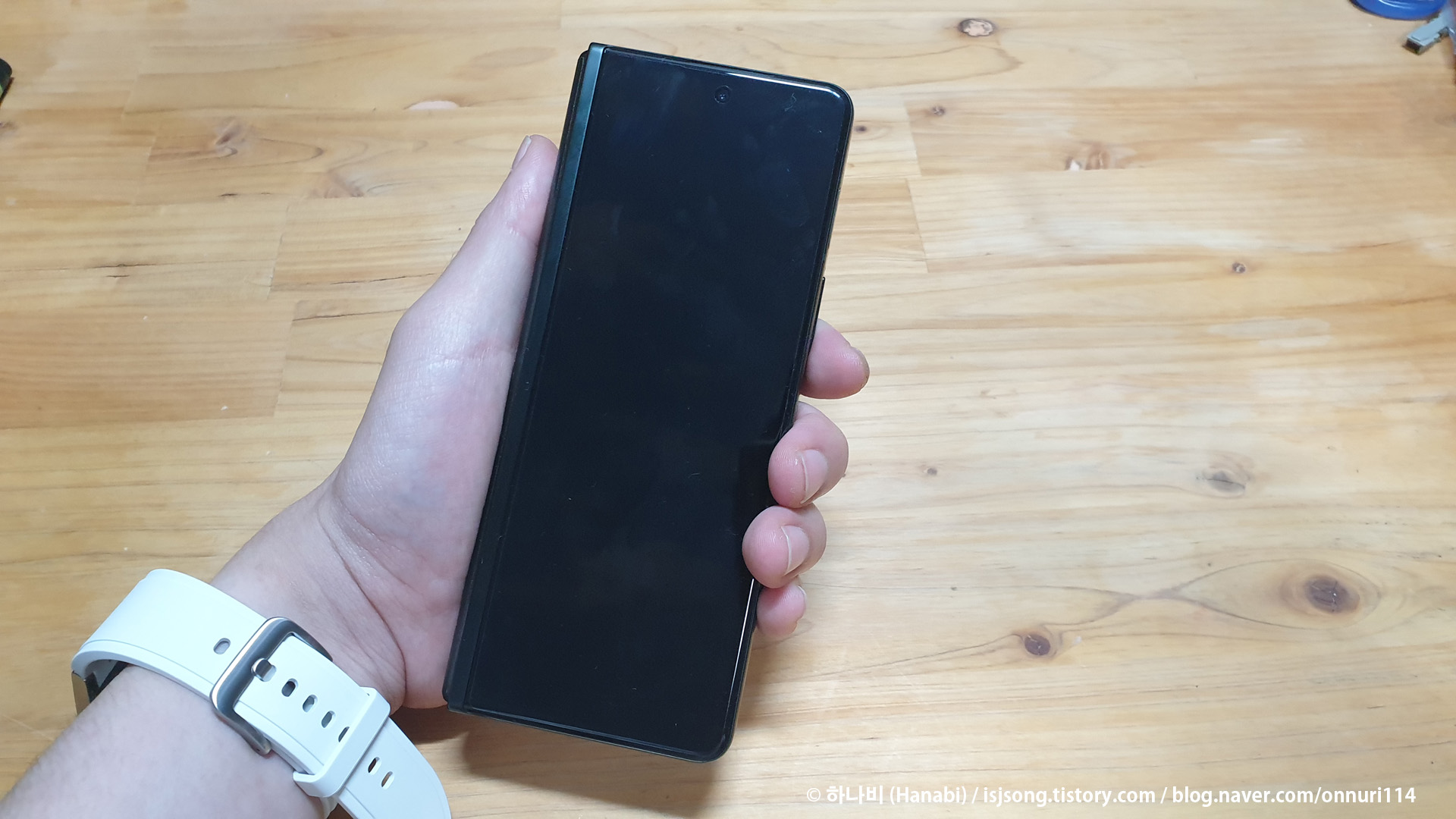 제가 손이 작은편인지라 (^^;;;) 노트9 + 커버면 맨날 폰이 손에서 주르륵 빠져나가서 자유낙하를 했었는데, 폴드 3는 한손에 딱 잡혀서 그럴 일은 크게 줄었습니다.