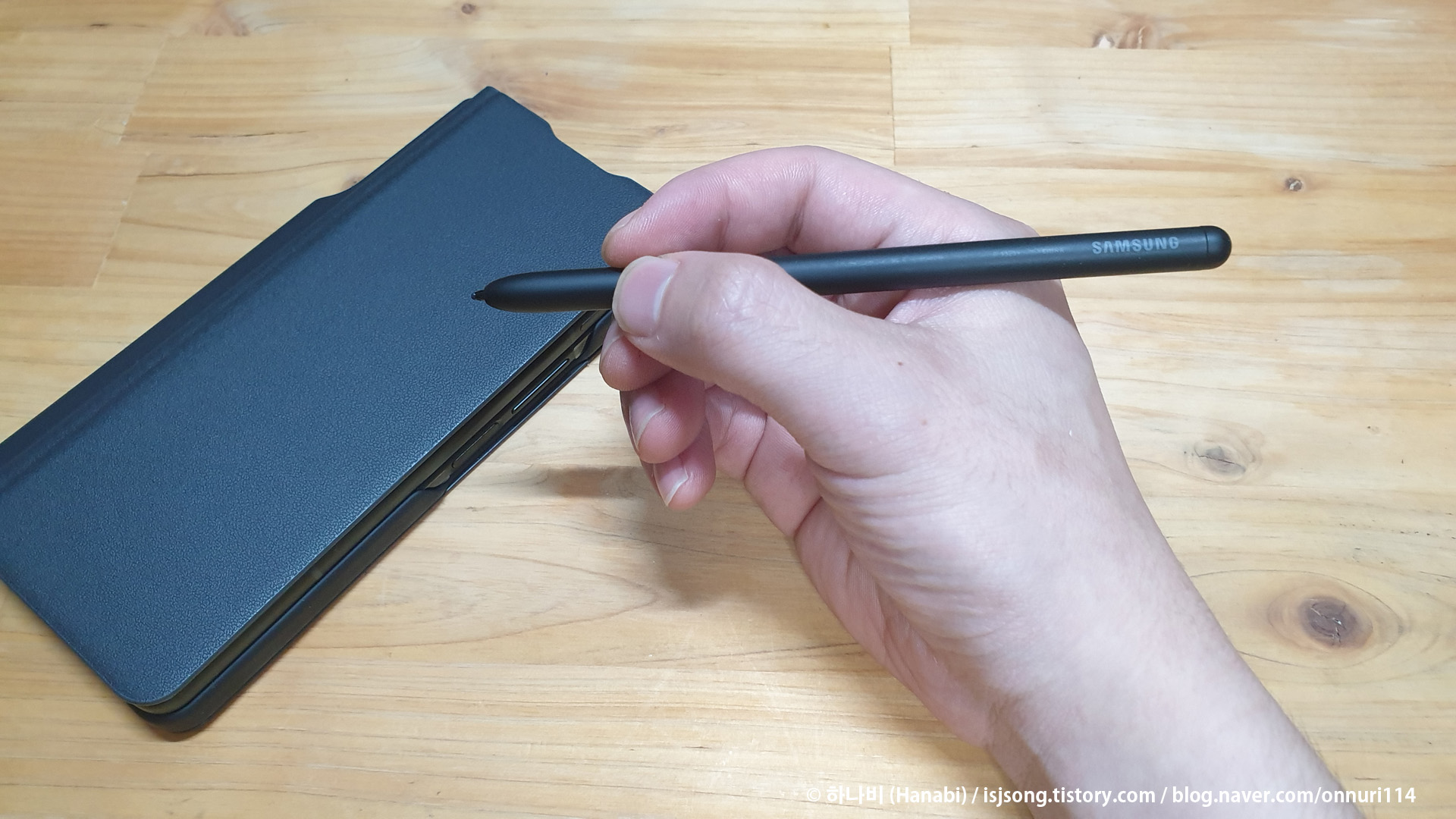플립용 커버의 S펜은 분리가 가능한데요, 이는 펜을 장착한 채로 한손으로 파지하면 그립감이 정말이지 좋지 않습니다 -_-