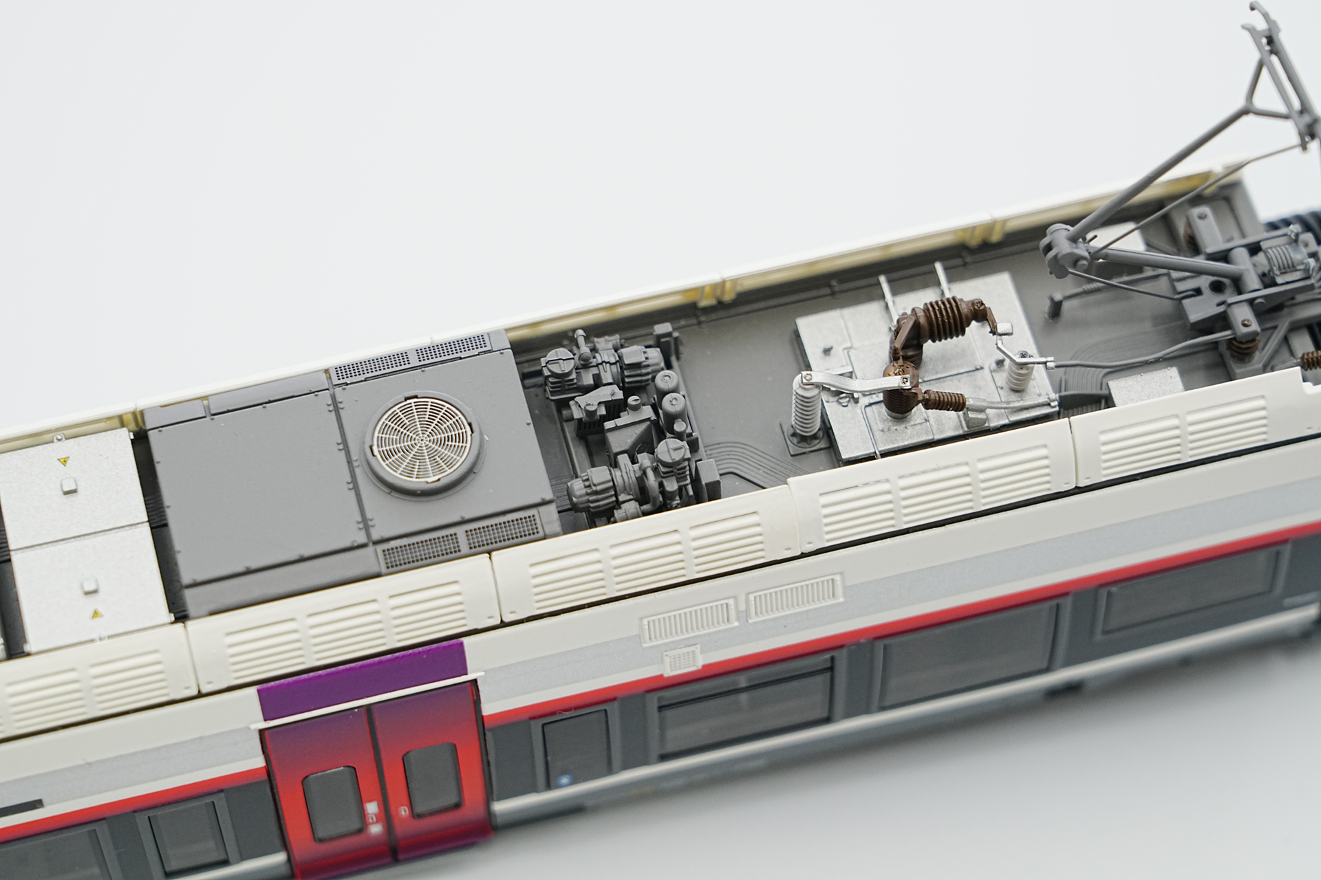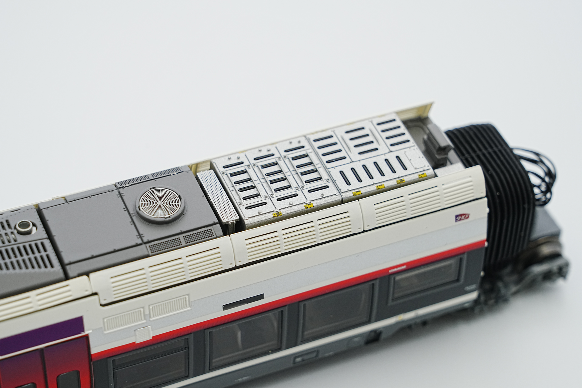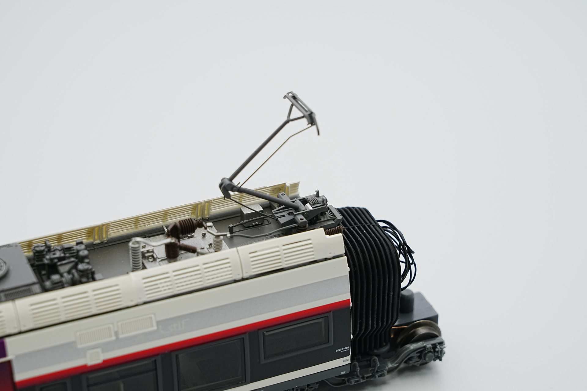 싱글암 팬터그래프와 직교류 겸용차량답게 곳곳에 보이는 애자까지 정밀하게 표현되어 있는 모습입니다.