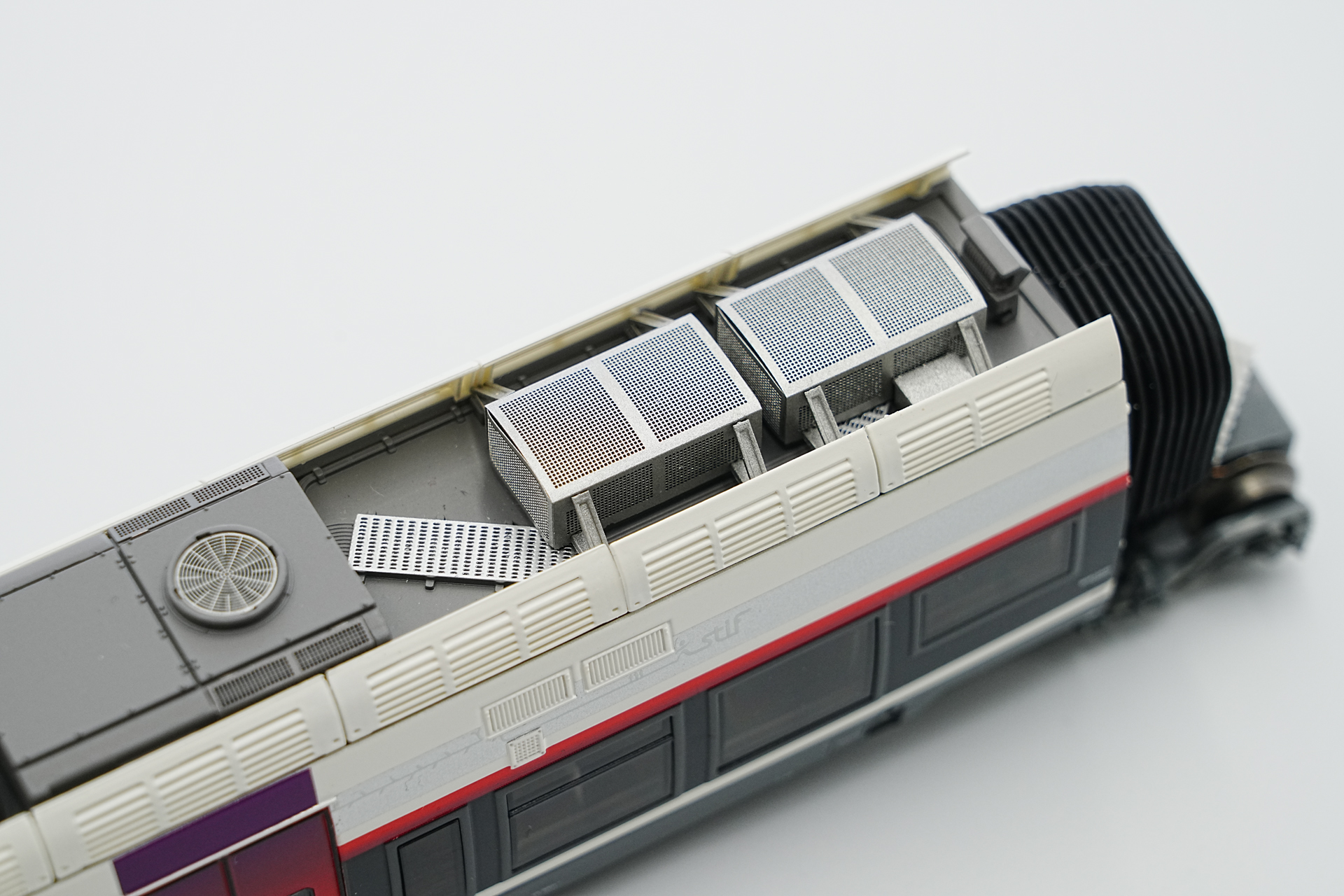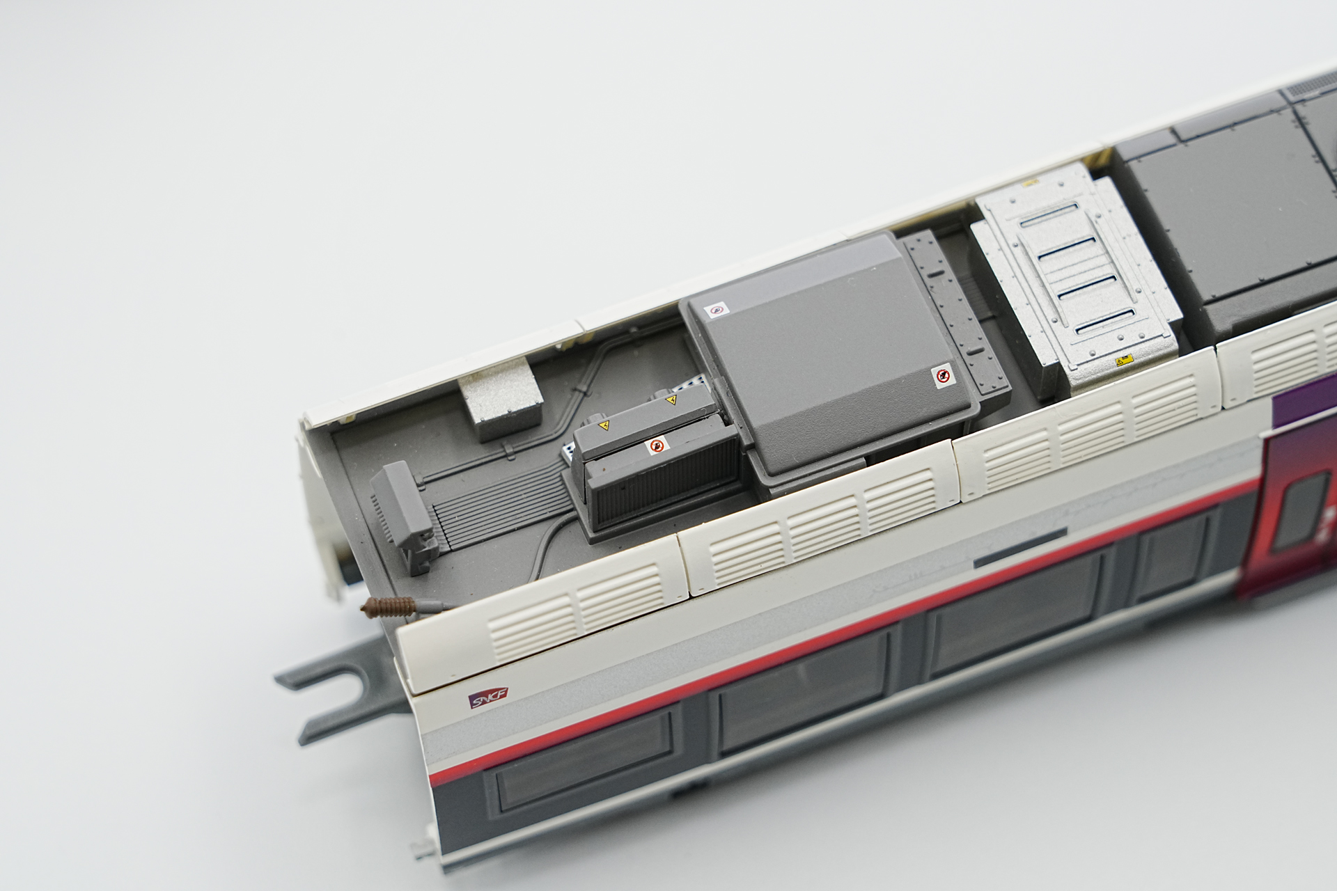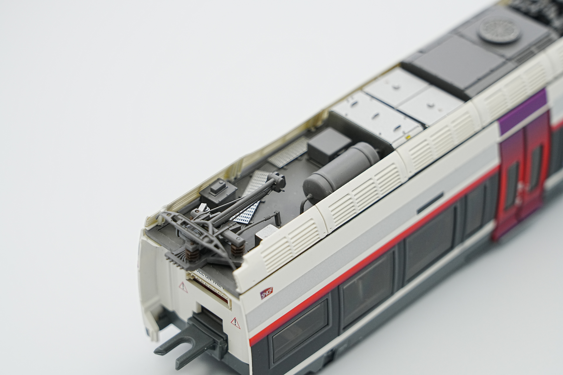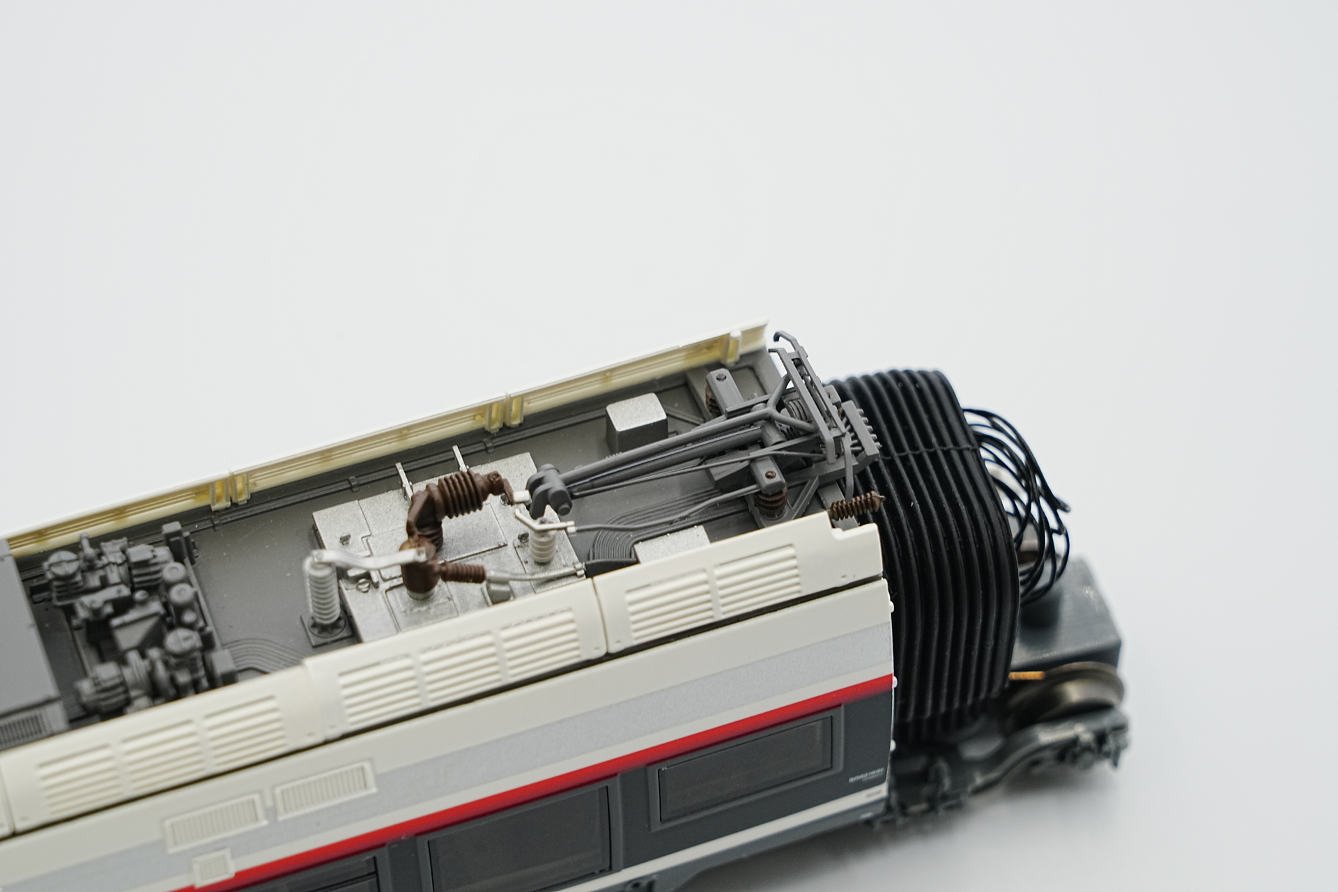 싱글암 팬터그래프와 직교류 겸용차량답게 곳곳에 보이는 애자까지 정밀하게 표현되어 있는 모습입니다.