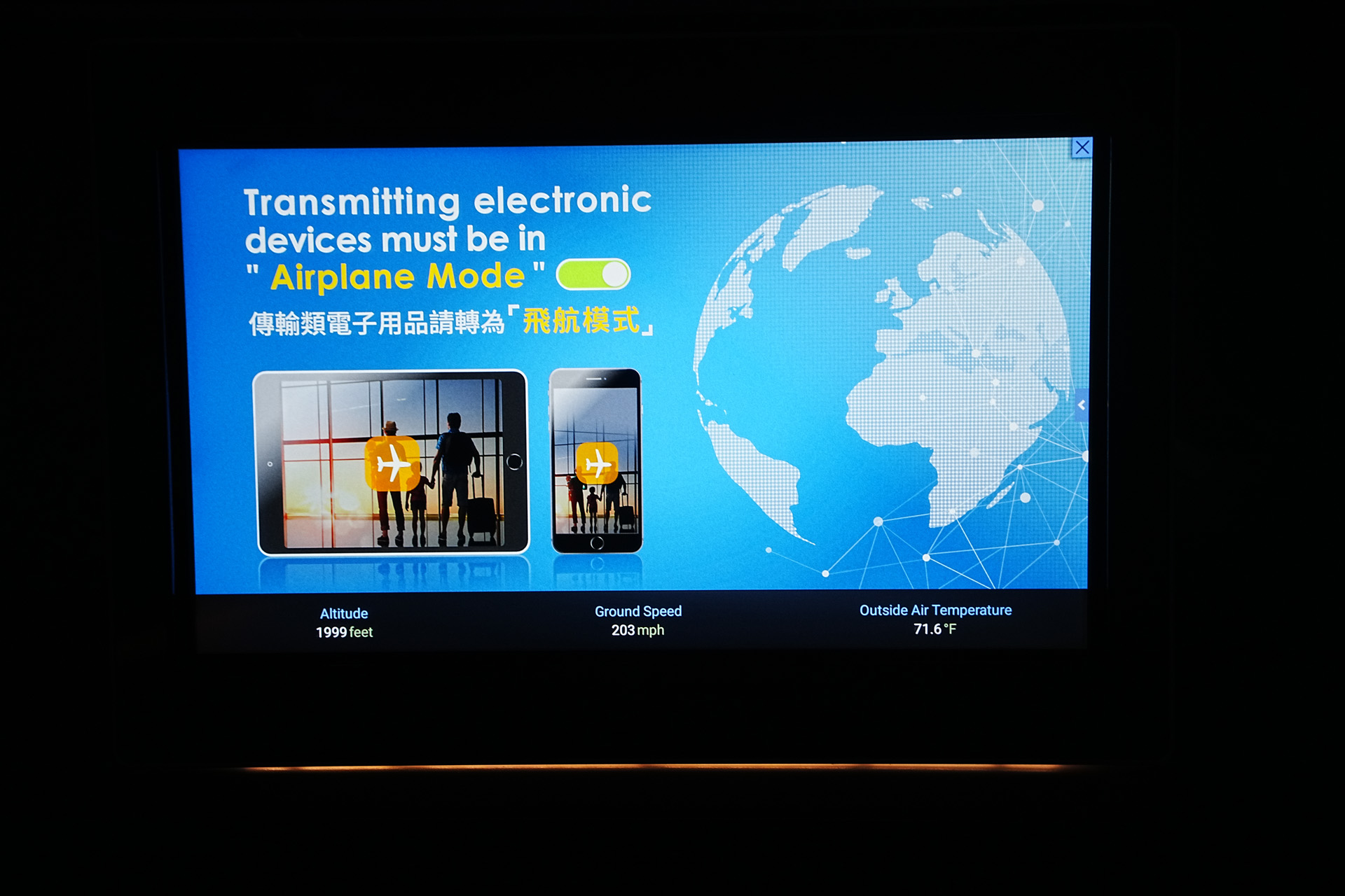 참고로 착륙 후나 푸쉬백 후 이륙 전에 이렇게 주의사항을 스크린으로 계속 안내해주는데요 (IFE는 작동 안함), 디자인이 뭔가뭔가스럽습니다.