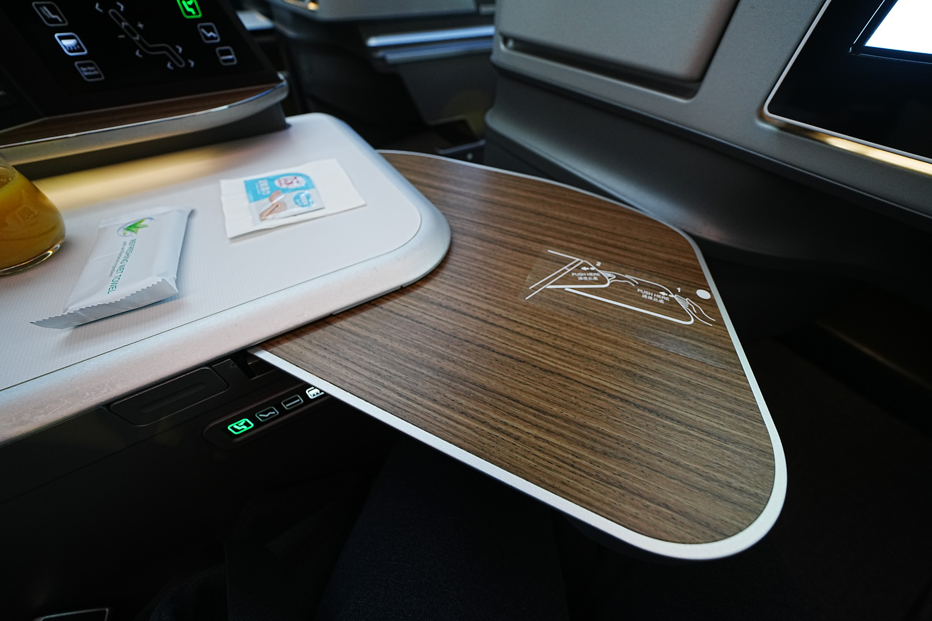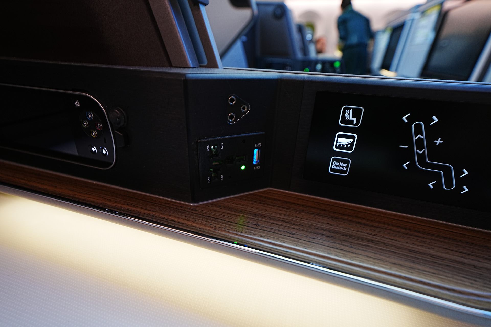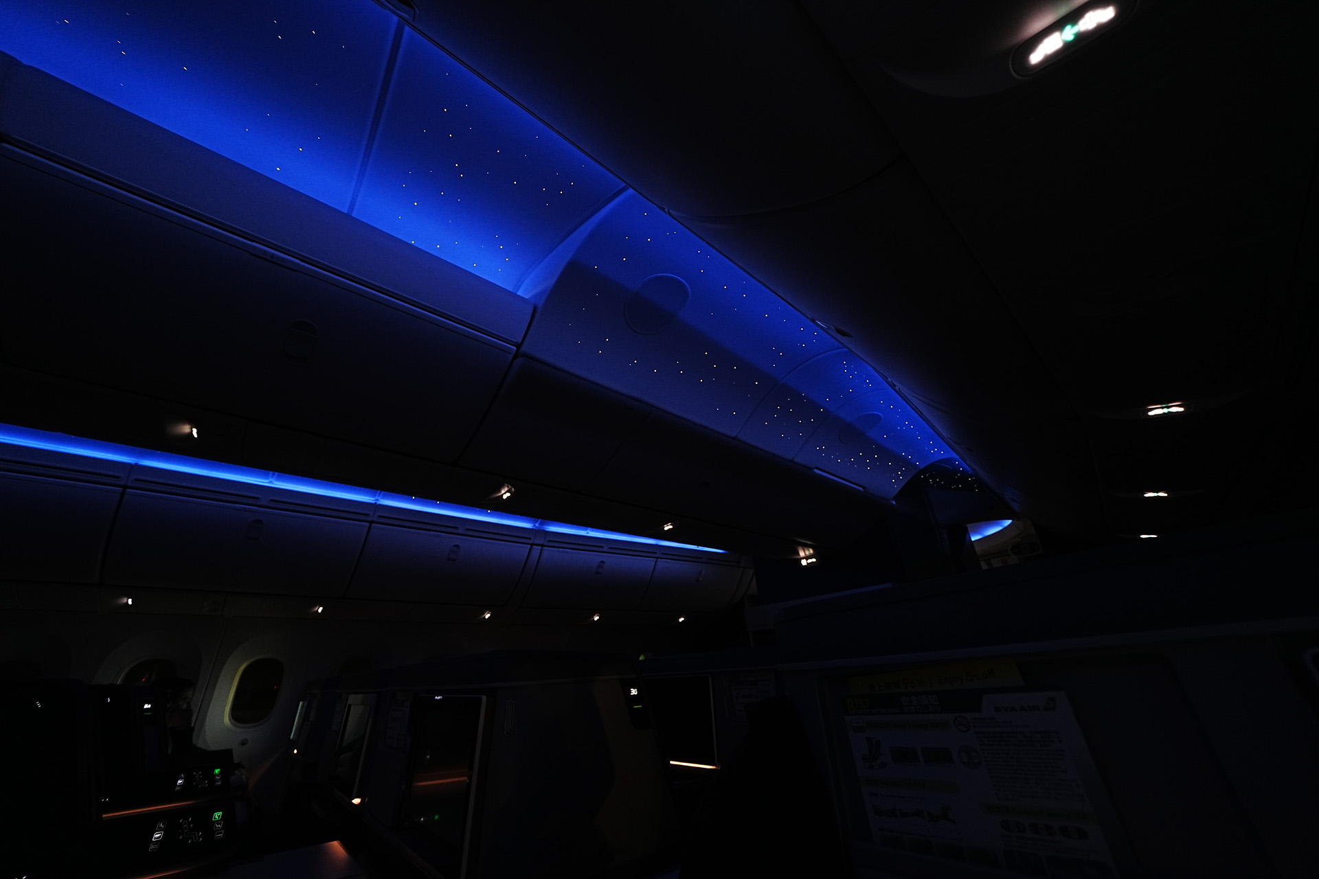 또한 저 나무같이 보이는 패널 아래로 무드등이 있어서 기내 불이 꺼져도 분위기를 낼 수 있게 되어있습니다. (역시 조절가능)
