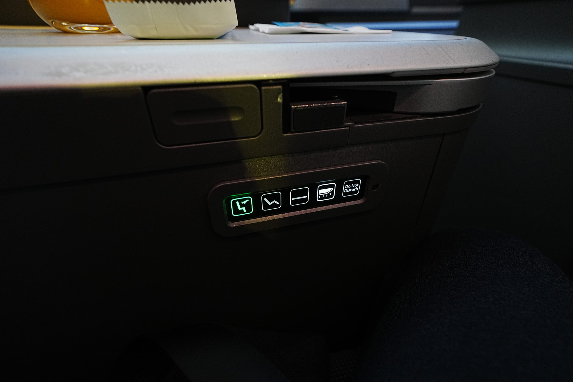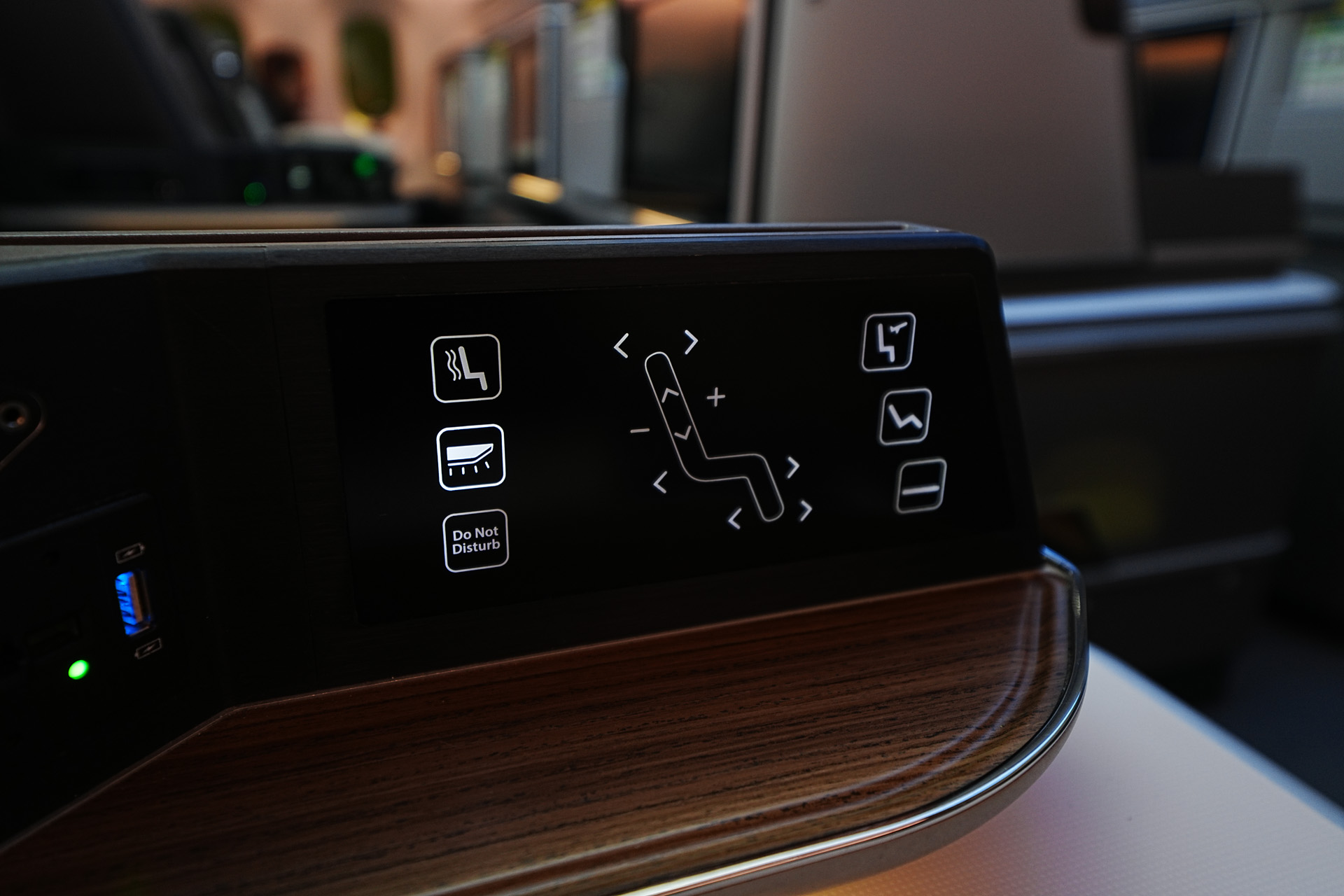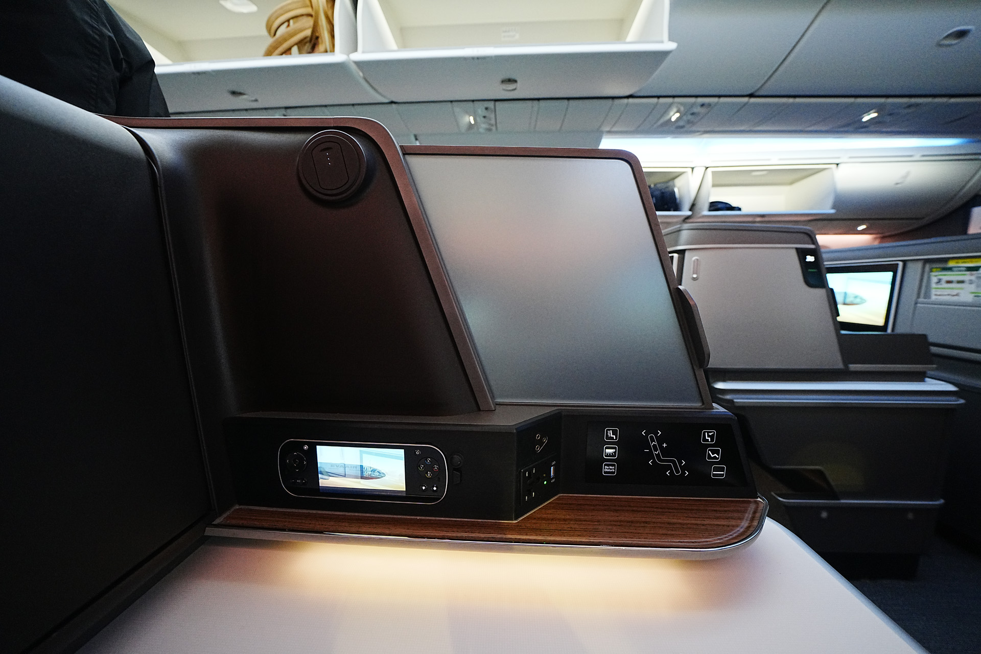 또한 저 나무같이 보이는 패널 아래로 무드등이 있어서 기내 불이 꺼져도 분위기를 낼 수 있게 되어있습니다. (역시 조절가능)
