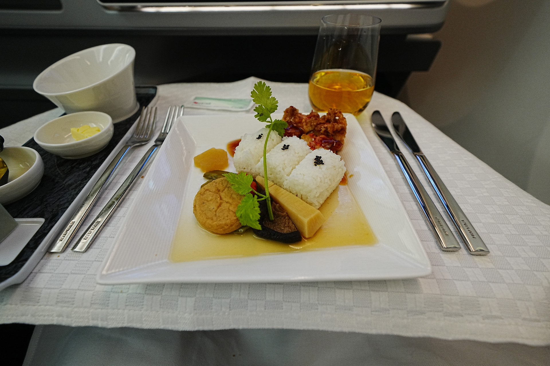 보기엔 좀 느끼해보여도 생각보다 깔끔한 맛으로 밥의 감촉이 맛있었습니다. (뭐 비행기 안에서는 지상에서보다 맛을 잘 못느끼긴 하지만요 ㅎㅎ)