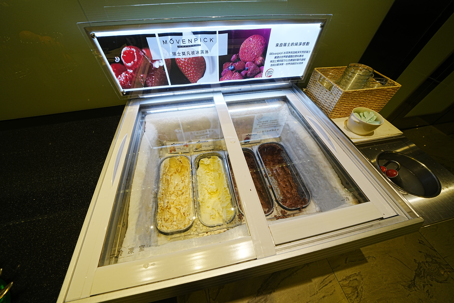 먹을거를 먹기 위해서 좀 두리번거렸는데요 (아, 사진 찍는걸 깜빡했네요 -_-) 무려 스위스의 movenpick 아이스크림을 가져다 놓은 것을 볼 수 있습니다.