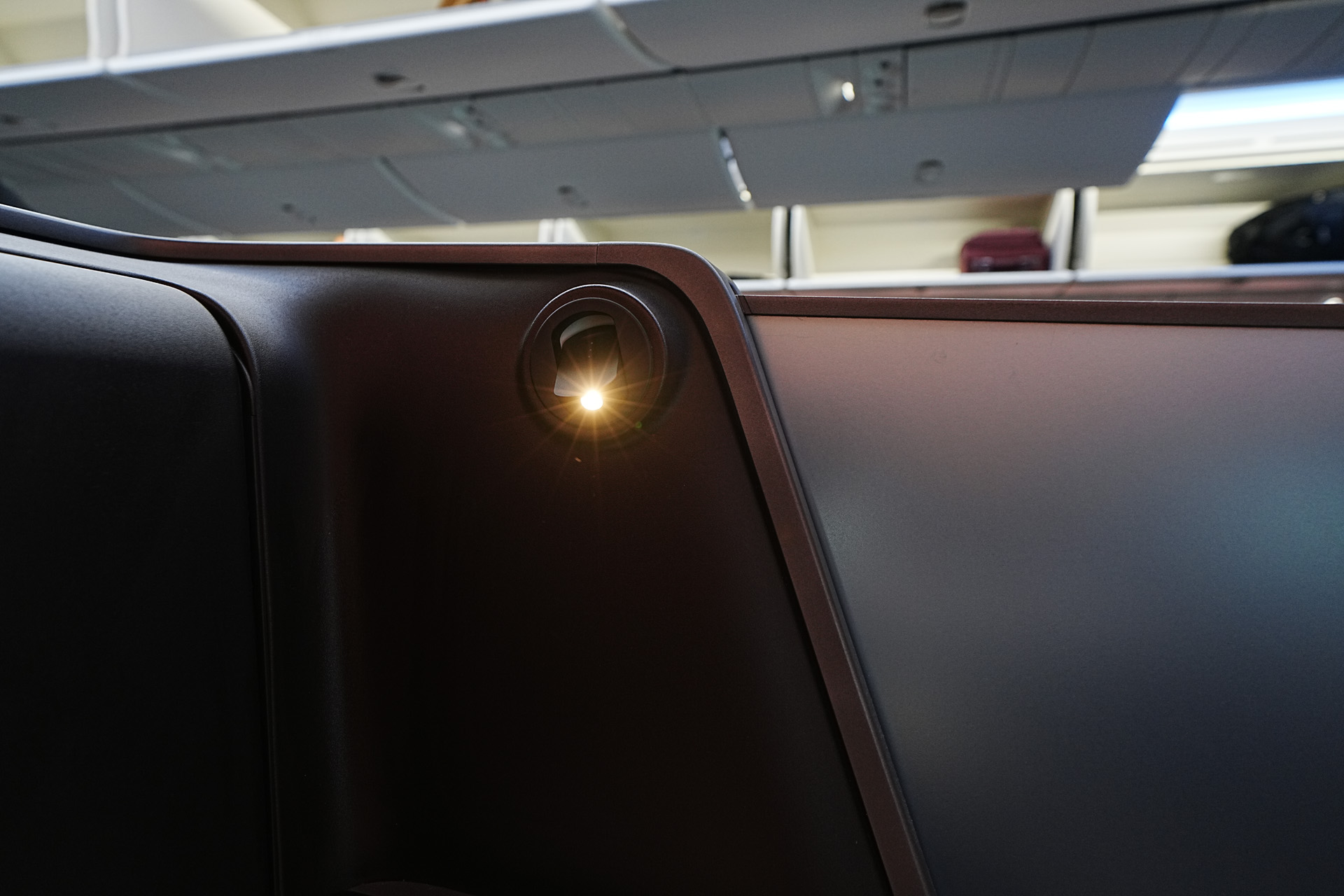 또 다른 기능으로 좌석 옆의 손잡이를 당겨서 불투명한 프라이버시 칸막을 칠 수 있게 되어있습니다.