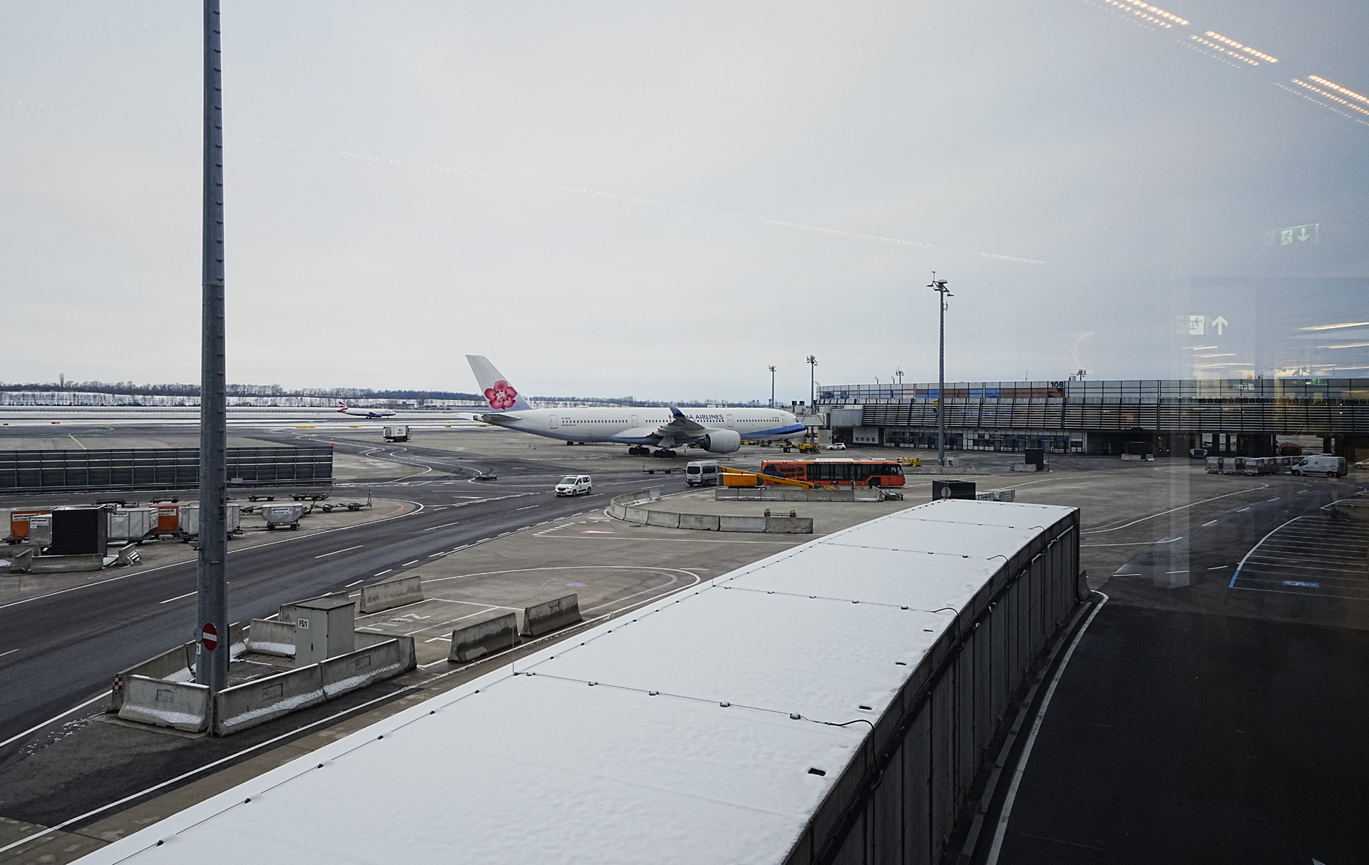 환승을 위해서 이동하는 찰나, 저 멀리 같은 타이페이에서 온 중화항공 A350이 보입니다.