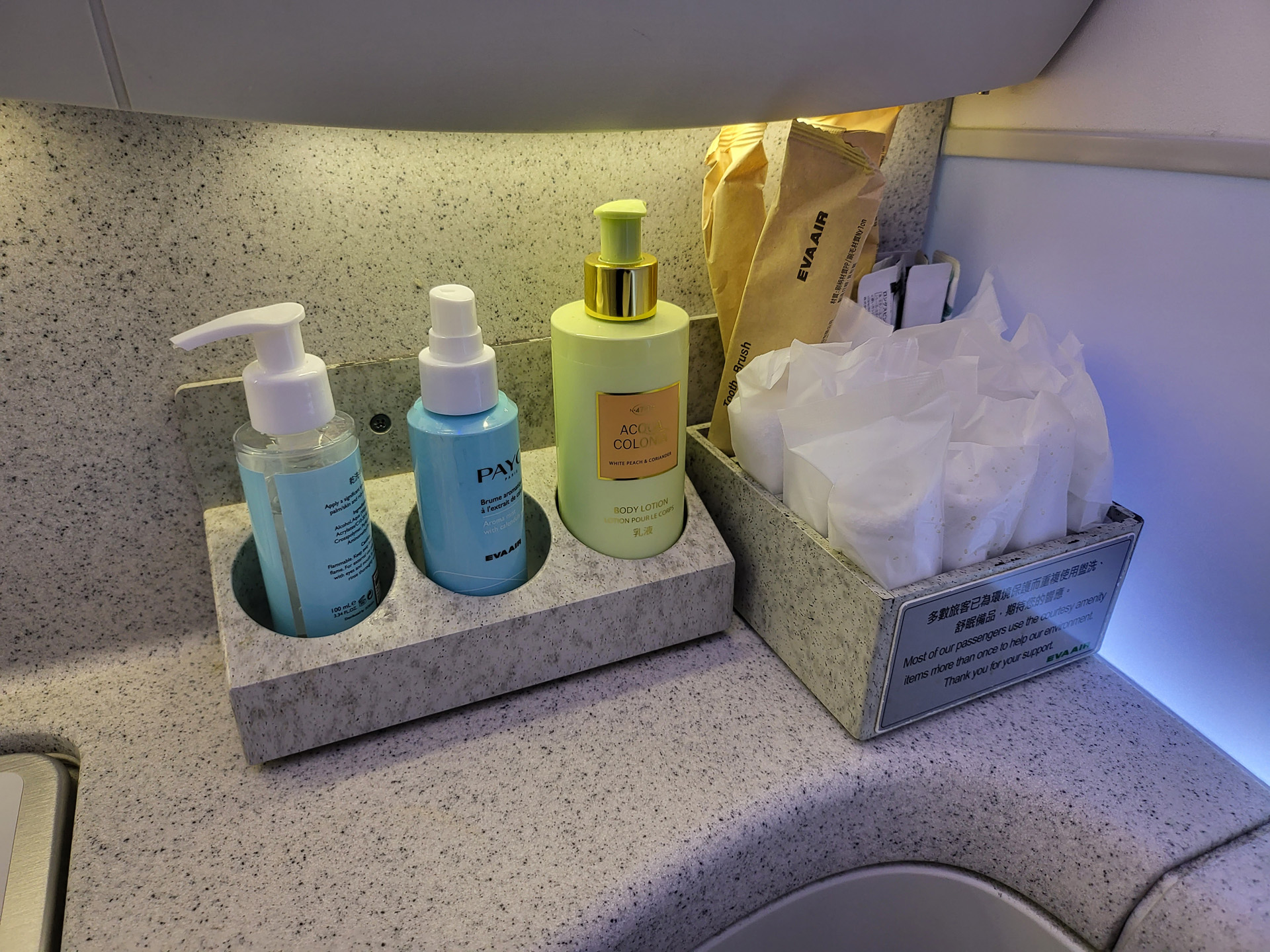 앞서 단거리 구간에서 구경해보지 못했던 EVA항공의 어메니티 키트입니다.