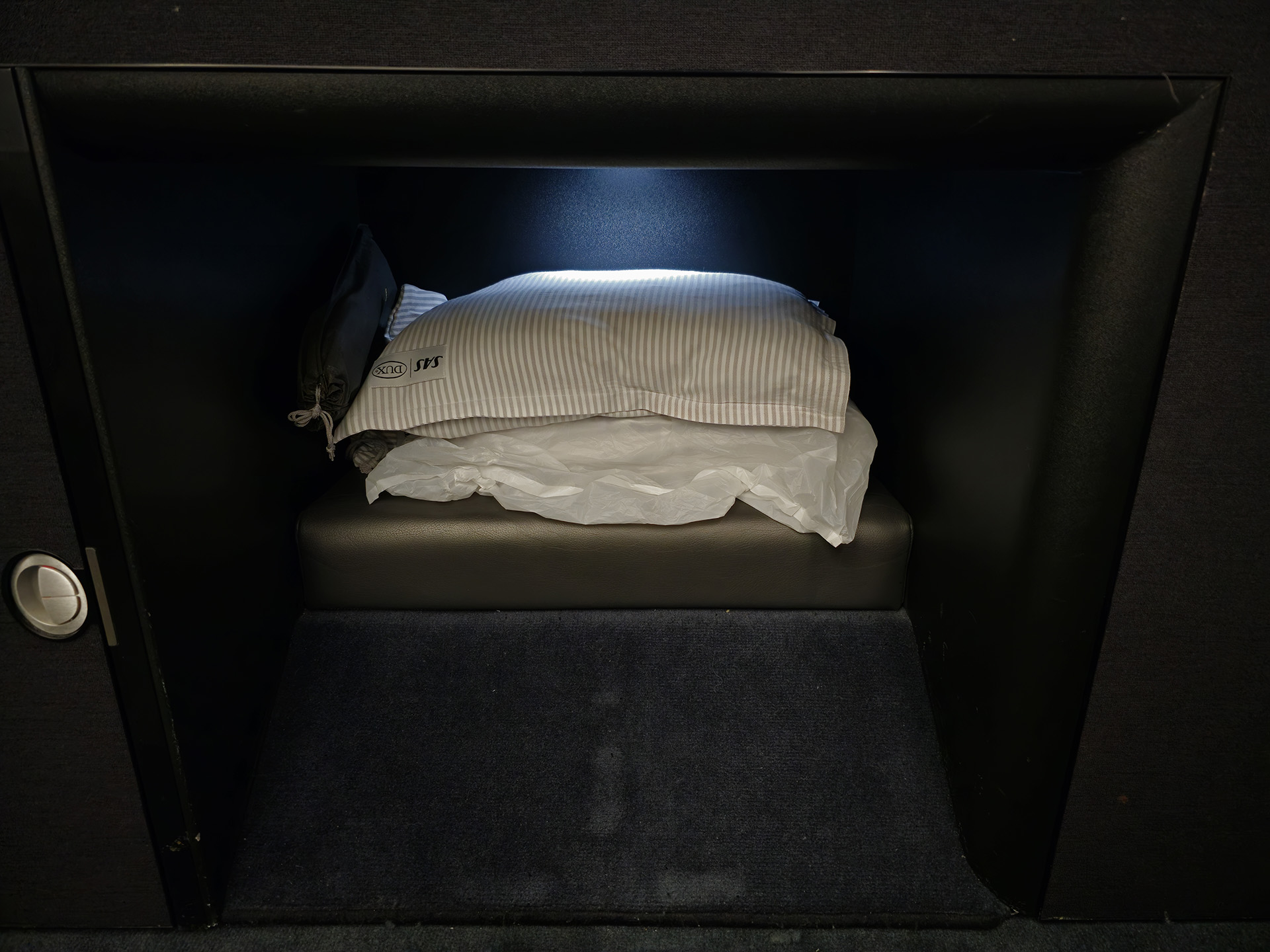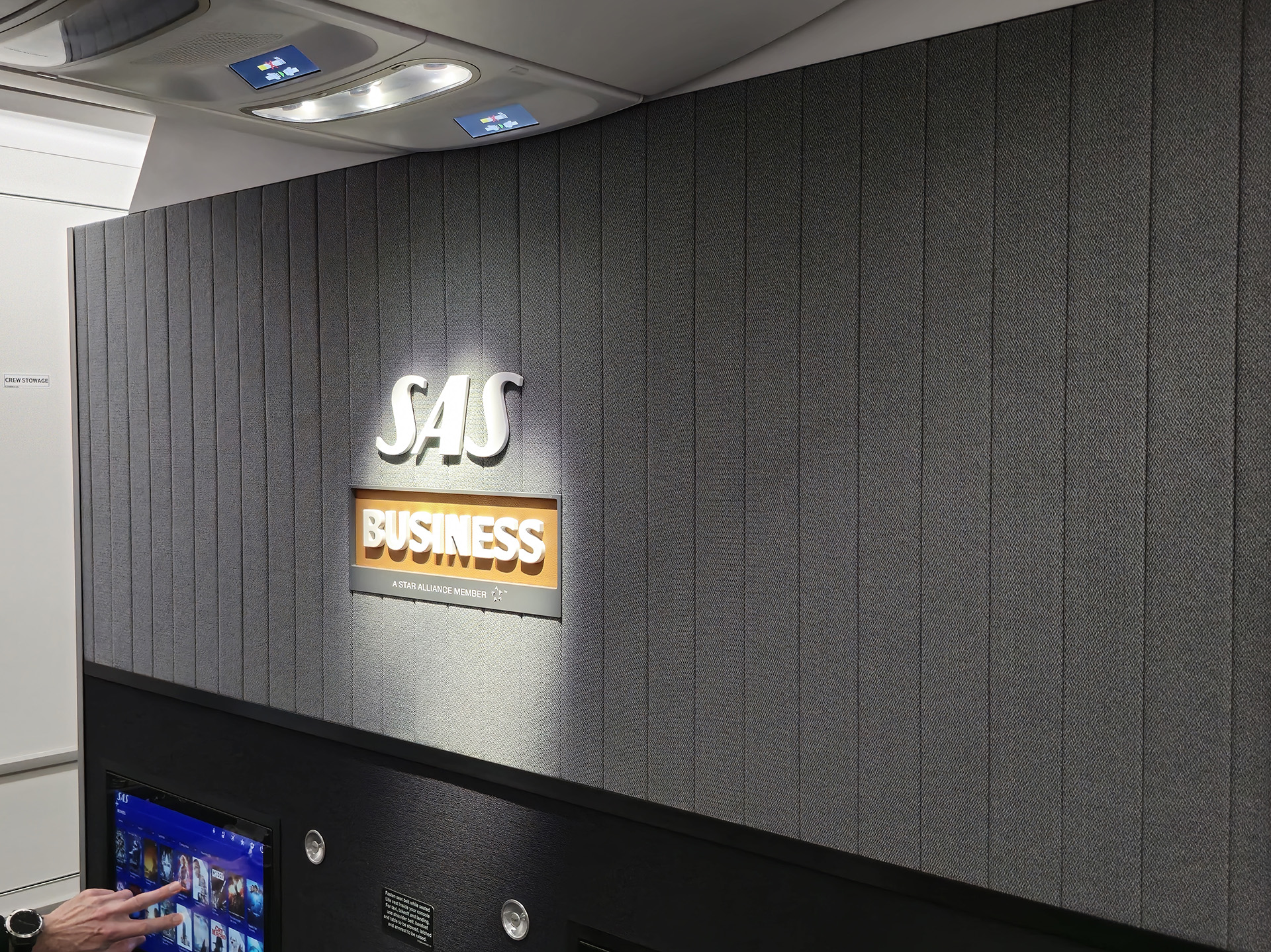 탑승하면 맨 앞 중간 벌크헤드에는 큼지막하게 SAS 비즈니스 로고가 박혀 있습니다.