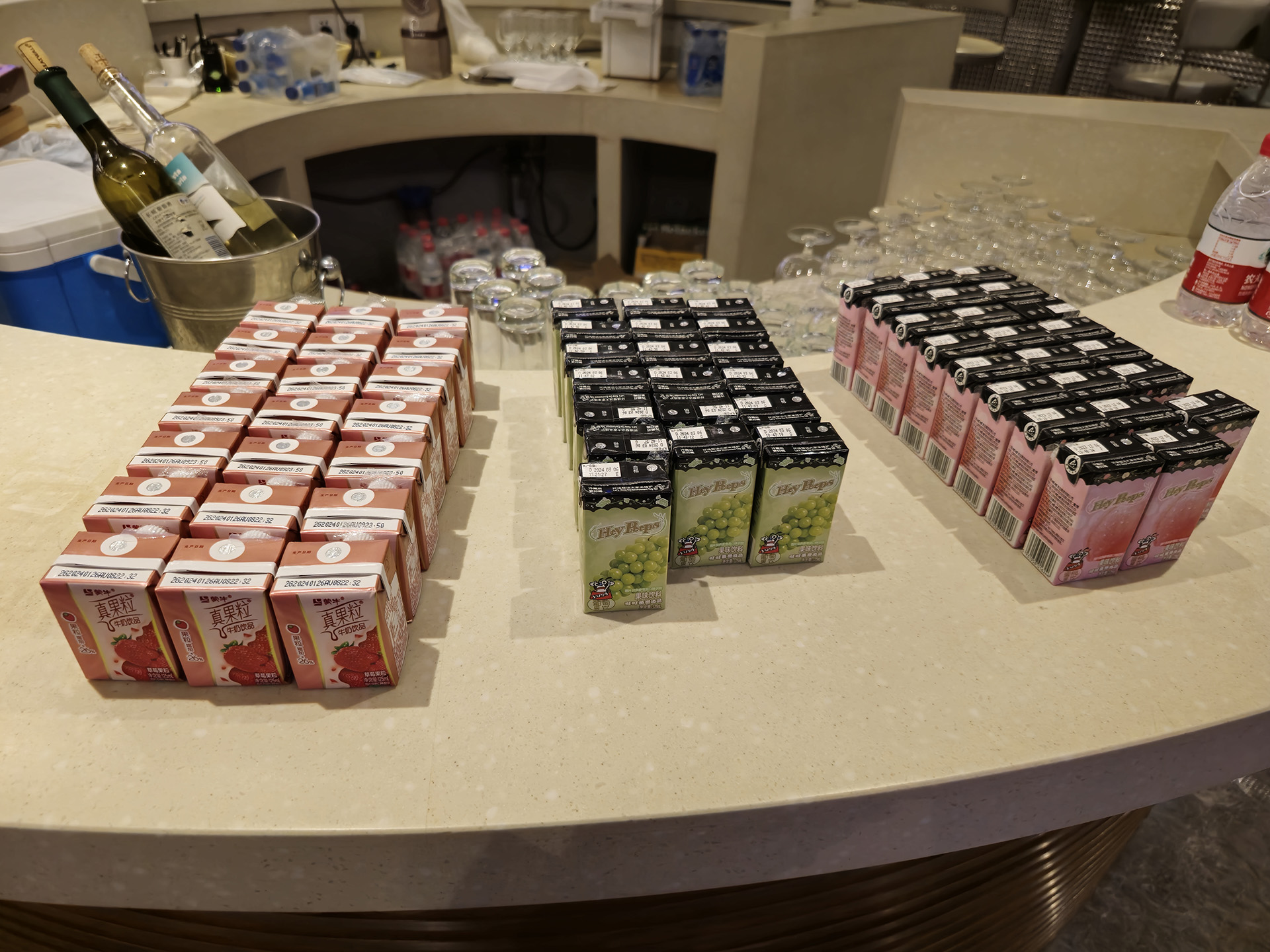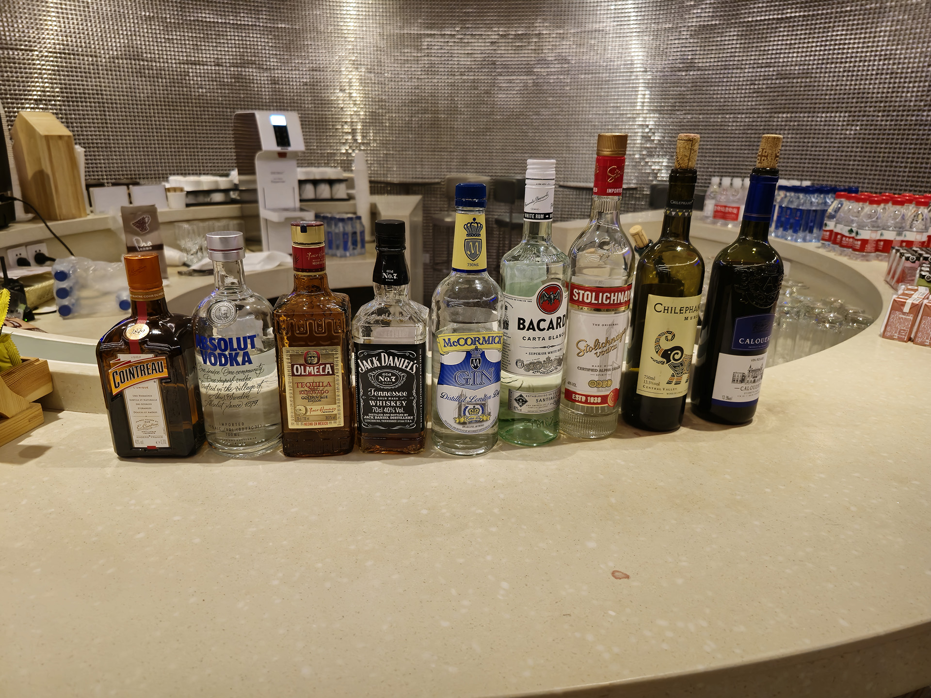 상하이발인데, 이날은 간단한 샌드위치와 와인, 토닉워터, 진, 물병들을 놔둔 모습을 볼 수 있습니다.
