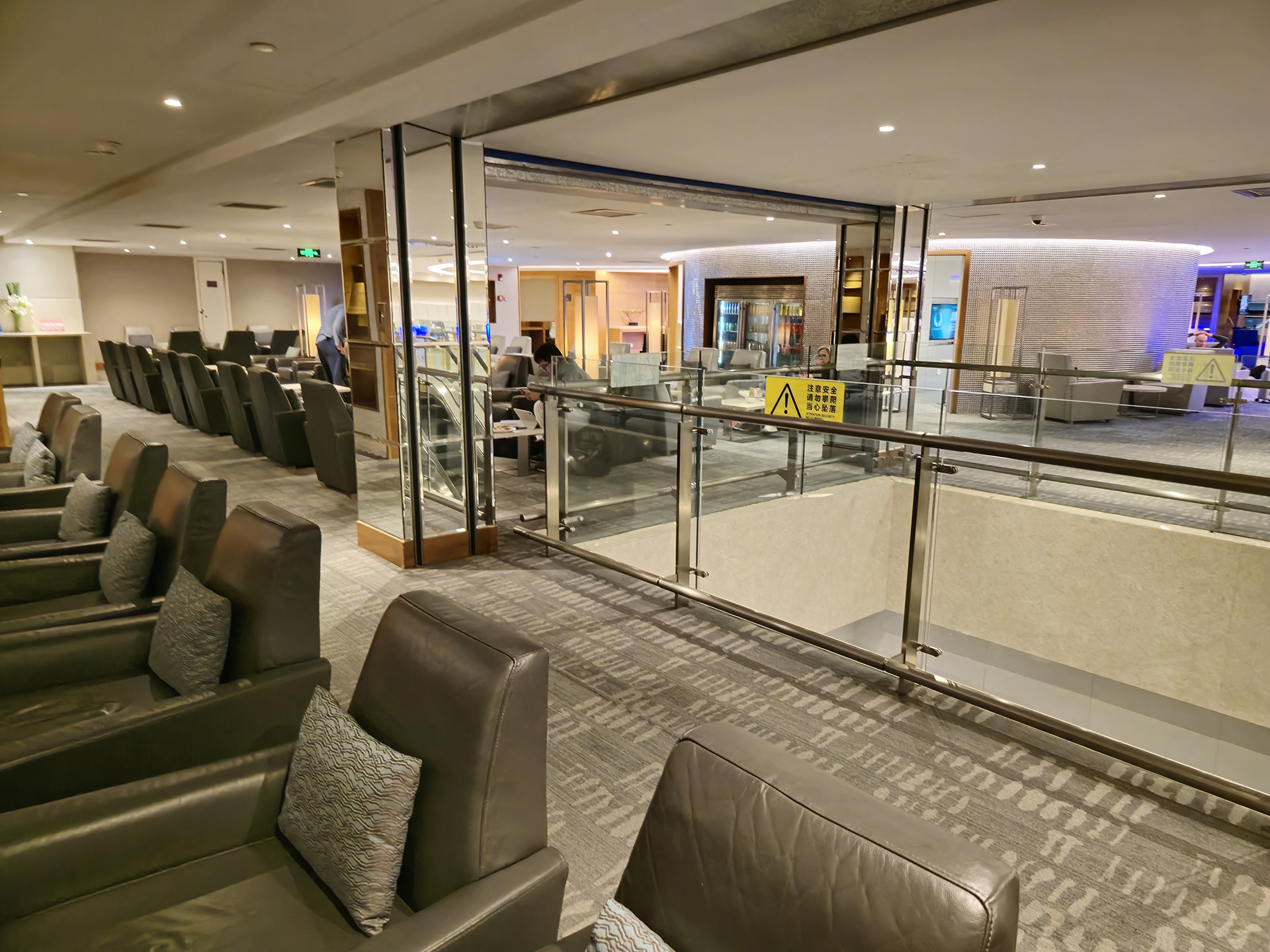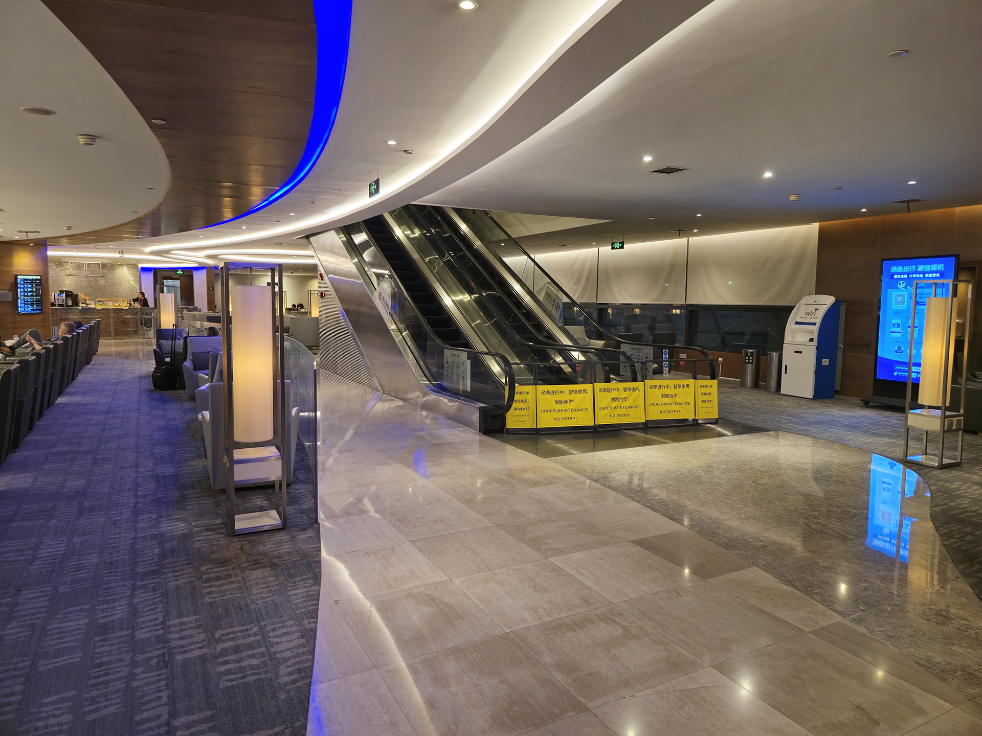 푸동공항 에어차이나 라운지는 2층 구조의 라운지로, 내부에 연결 에스컬레이터가 있는데, 이날은 공사중이었습니다.