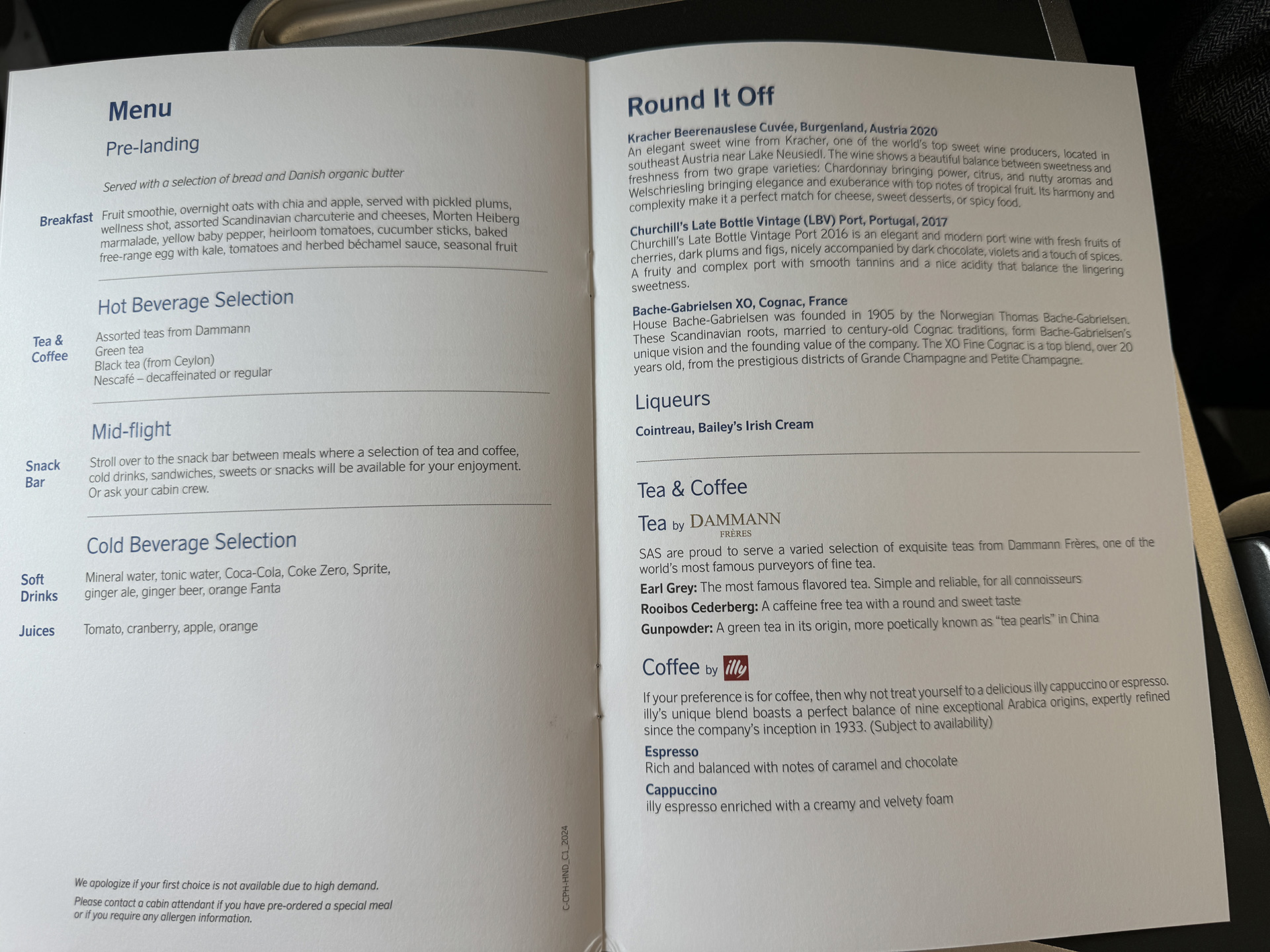 메뉴판은 상하이-코펜하겐 구간에서는 못찍어서 따로 코펜하겐-도쿄 구간에서만 찍었습니다.