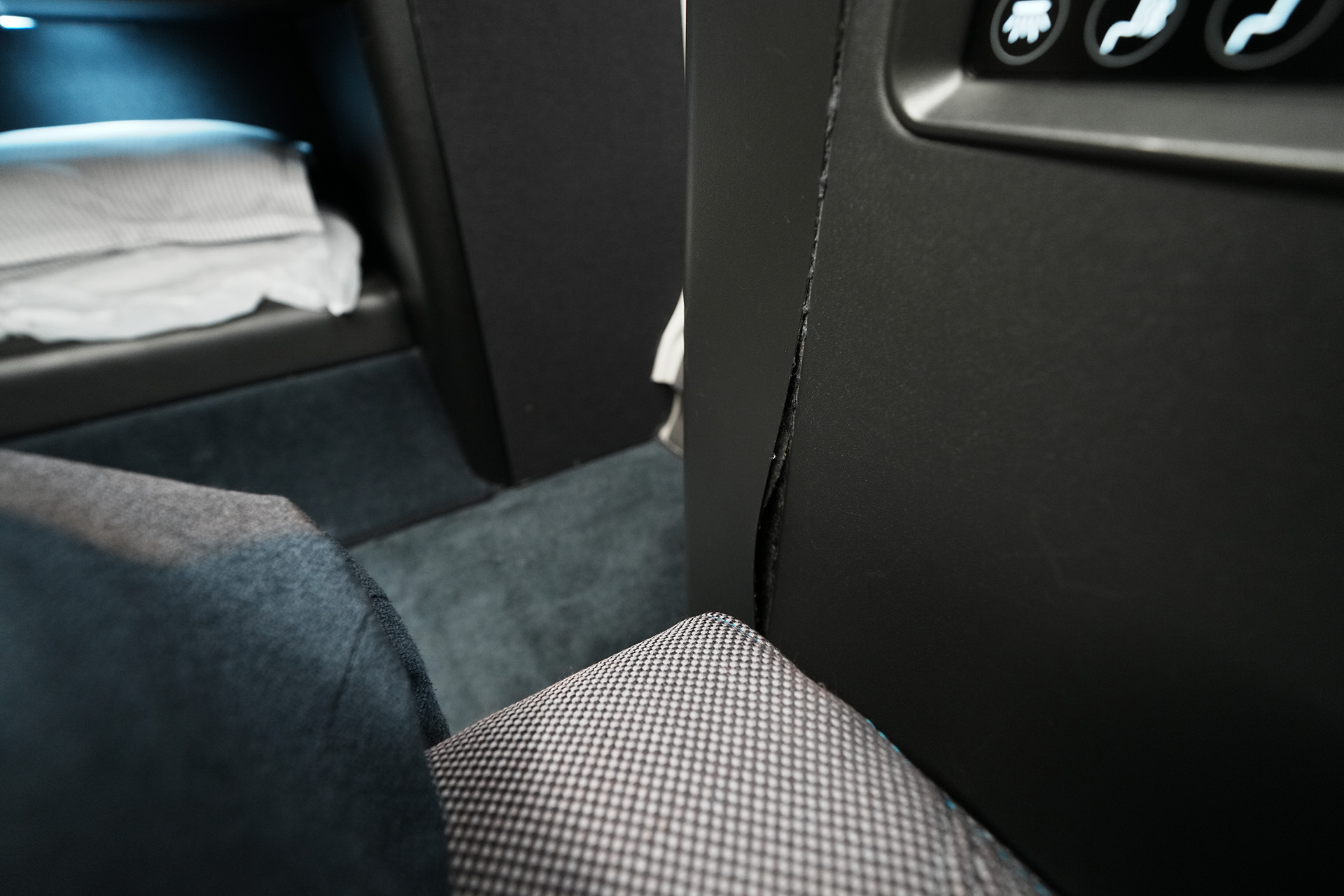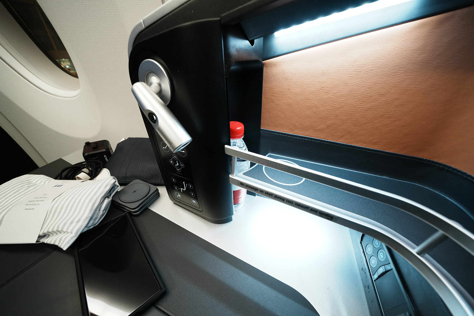 첫번째 좌석 사진에서 보인 독서등 아래에 조작 패널이 하나 있고, 여기 좌석 바로 옆에 조작 패널이 하나 더 있습니다.