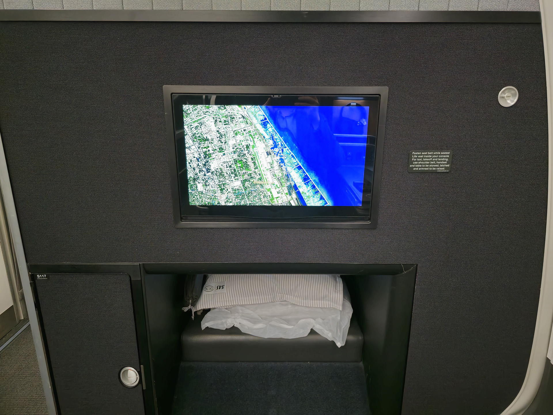 다만 앞뒤 공간이 넓다는건 화면이랑 거리가 타 좌석대비 멀다는 뜻이라, 화면으로 영화나 IFE즐기시면 그닥 추천드리고 싶지는 않습니다.