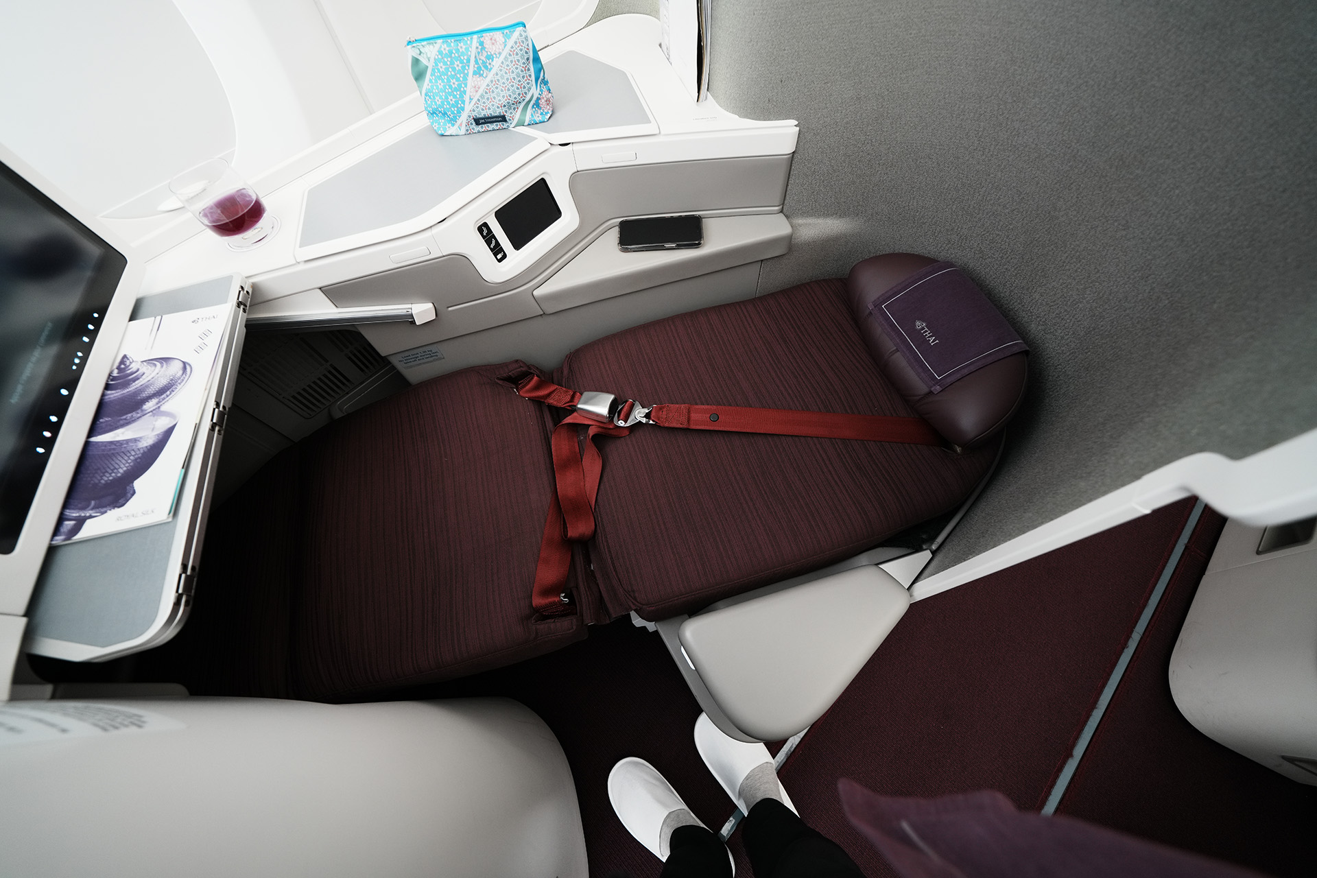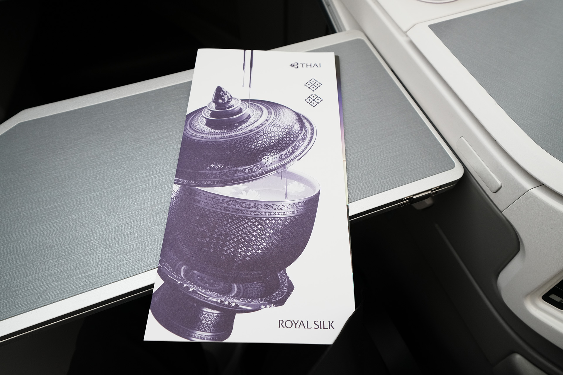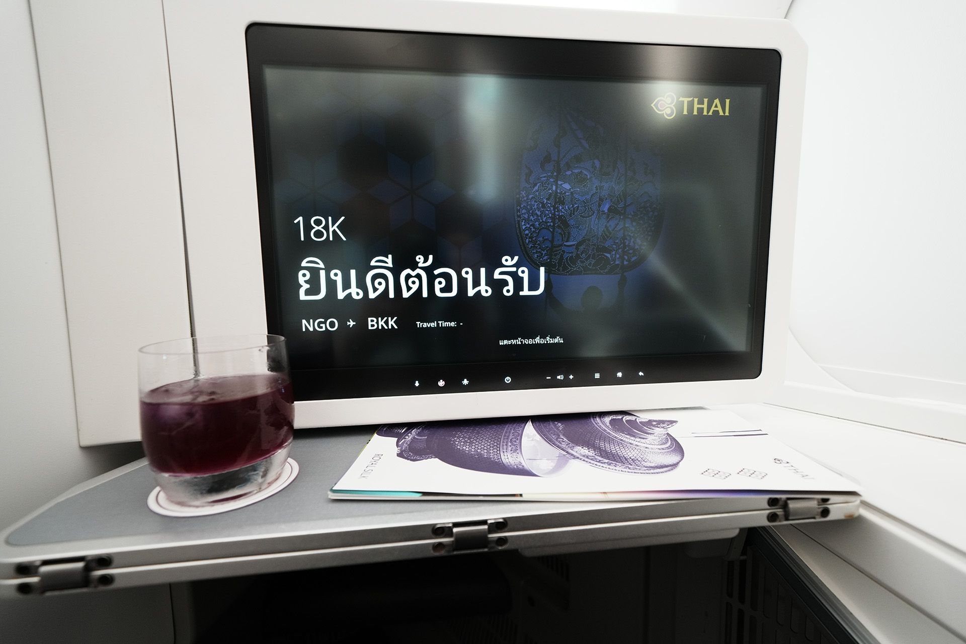 타이항공의 A350은 총 4종류의 바리에이션이 존재하며, 이번 항공편은 콜린스사의 Super Diamond 기반 리버스헤링본 타입의 1-2-1 좌석이고, 메인 색상은 와인색입니다.