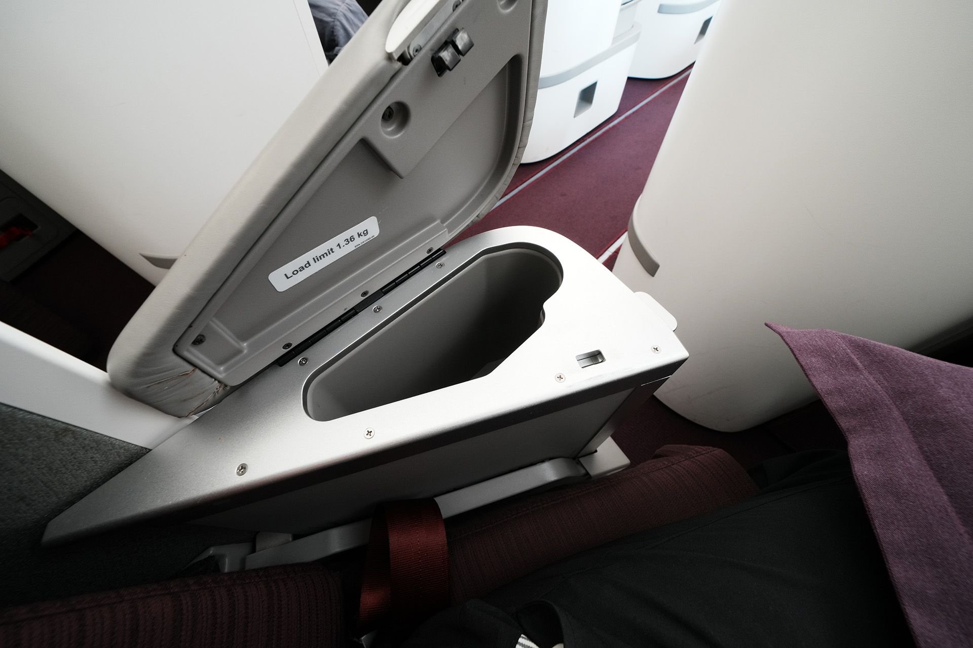 좌석 옆에는 올렸다 내렸다 하는 팔걸이가 있고, 팔걸이 안에는 수납함이 있습니다.