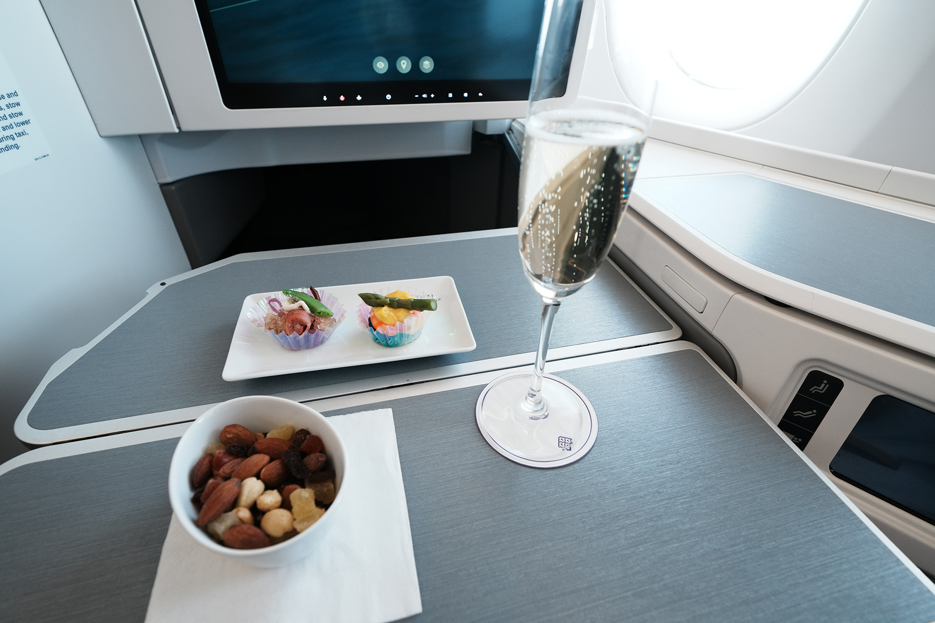 먼저 샴페인과 견과류, 그리고 간단한 주전부리를 받았습니다.